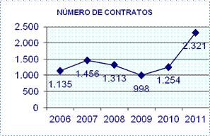 Número de personas contratadas en 2011: 1.381 (1,68 contratos por persona y año)